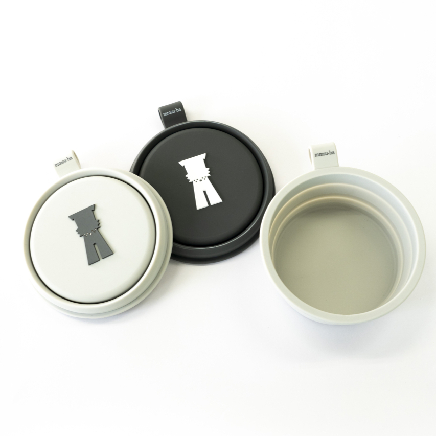 携帯用の水入れです。柔軟なシリコン製で、折りたたんでスマートに持ち運びできます。